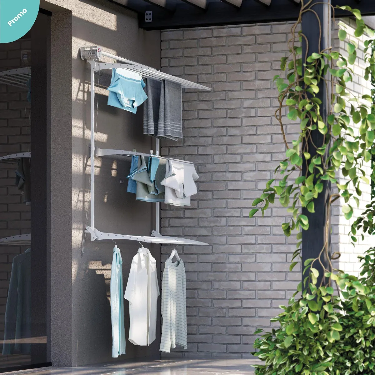 - Convient pour une installation à l'intérieur ou à l'extérieur, que ce soit dans une buanderie, une salle de bain, sur un balcon ou une terrasse.