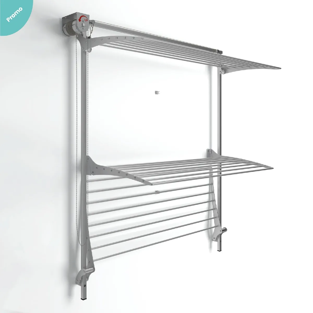 La grille supérieure peut être ajustée à n'importe quelle hauteur, vous offrant une flexibilité totale pour adapter l'espace de séchage à vos besoins et à la configuration de votre pièce.