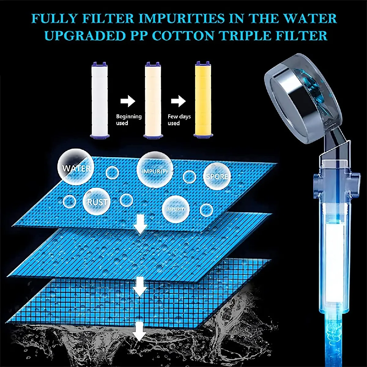 Matériaux de haute qualité : Fabriqué en ABS de qualité et en acier inoxydable, le filtre à eau inclus est placé dans la poignée de douche pour éliminer les impuretés dans l'eau.