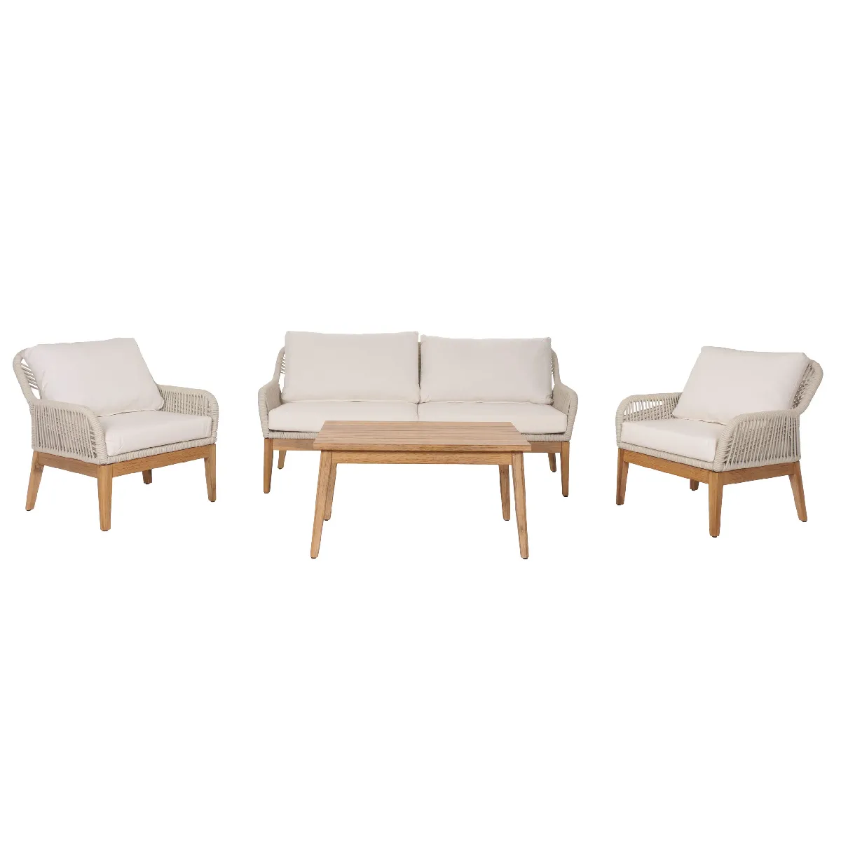 Salon de jardin avec table - bois - assises en corde tressée - style moderne