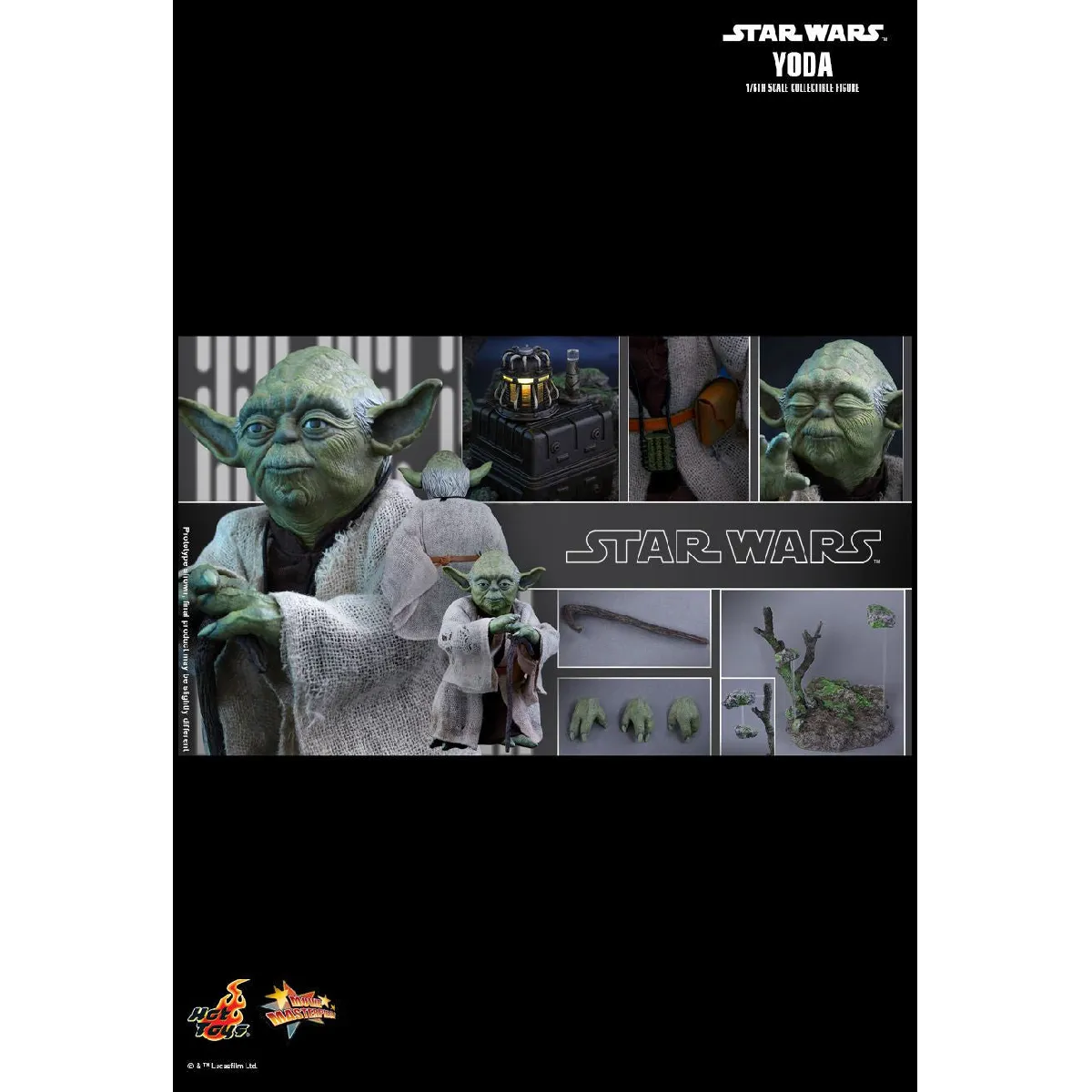 - Accessoires et diorama : canne, caisse, lampe, unité d'alimentation LED, socle Dagobah