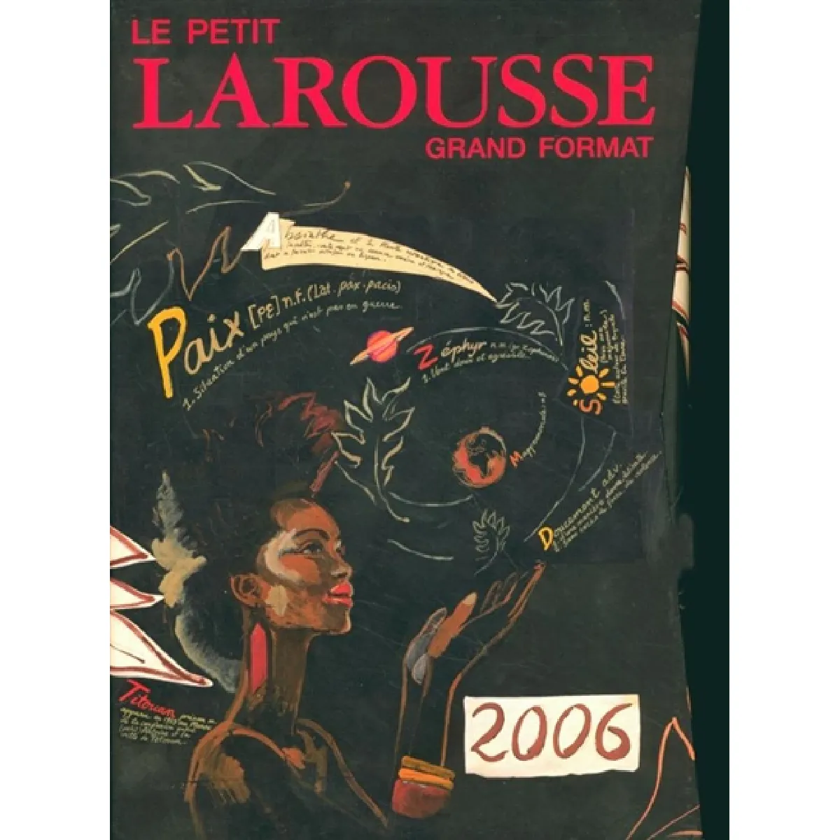 Quatrième de couverture : Réunit 59.000 noms communs, un cahier sur les mots nouveaux, 28.000 noms propres, une chronologie universelle et les pages roses de dictons et de grammaire. Comprend plus de 5.000 illustrations et des cartes géographiques et historiques. Le coffret est illustré par Titouan Lamazou.