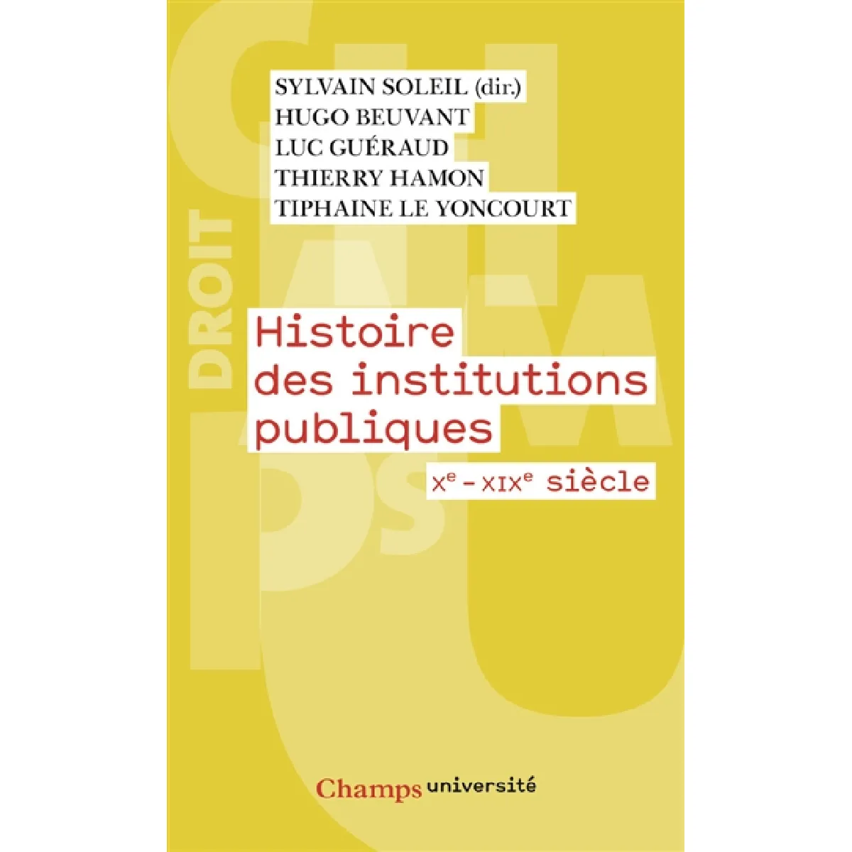 Biographie de l'auteur : Hugo Beuvant est spécialiste de la Révolution en Europe, Luc Guéraud est médiéviste, Thierry Hamon est moderniste, Tiphaine Le Yoncourt est spécialiste du XIXe siècle et Sylvain Soleil, moderniste à l'origine, s'est peu à peu concentré sur l'étude des institutions napoléoniennes. Tous sont enseignants-chercheurs en histoire du droit et des institutions.