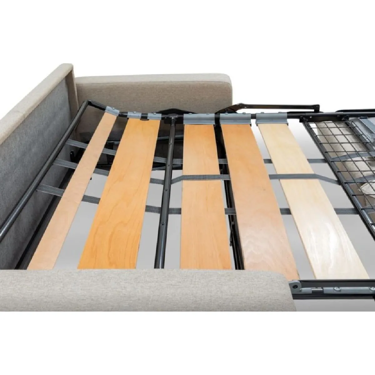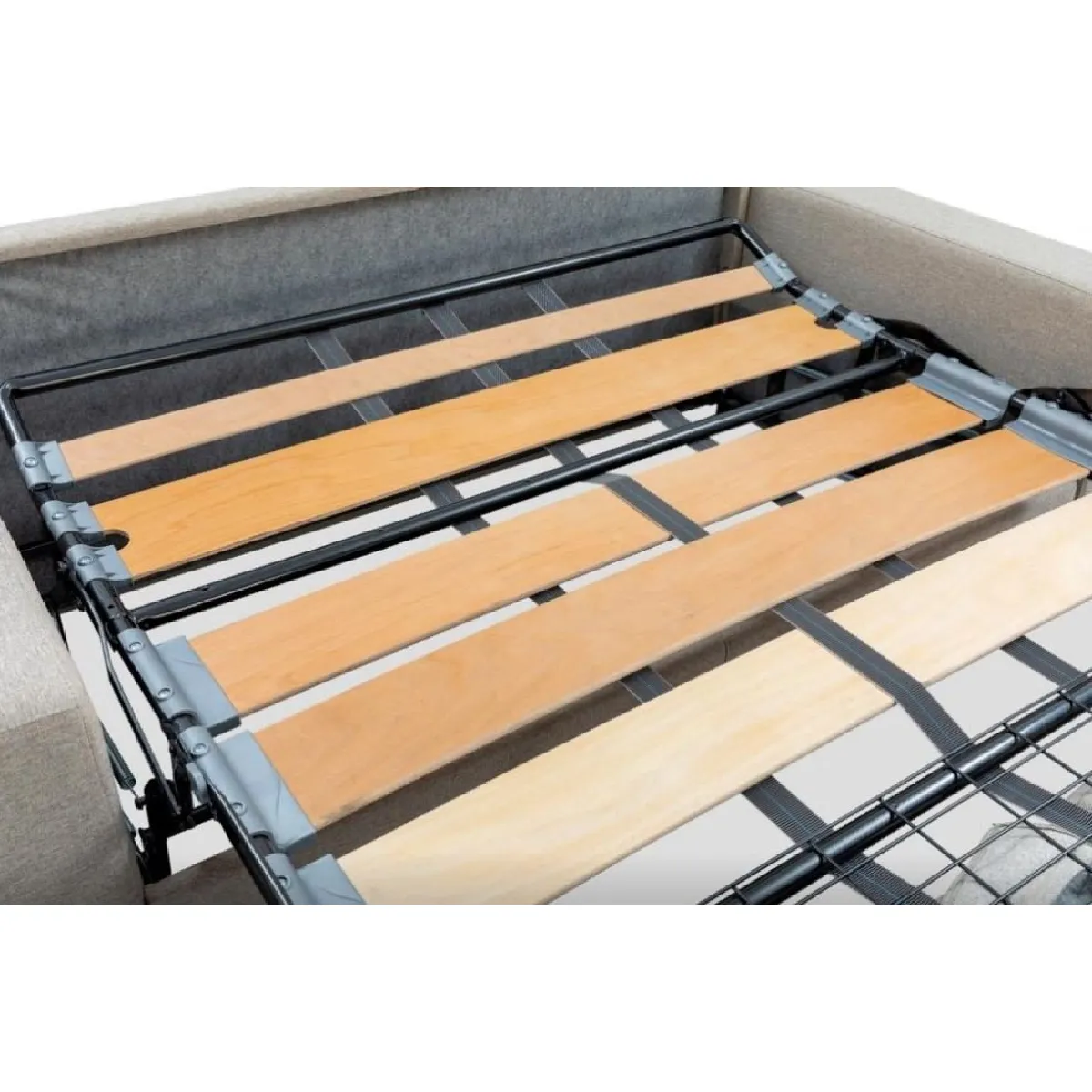 - Sommier : lattes en bois, structure métallique galvanisée