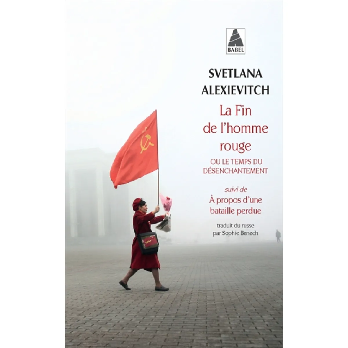 Quatrième de couverture : La fin de l'homme rouge Ou le temps du désenchantement Après soixante-dix ans de marxisme-léninisme, après des millions de morts, après l'implosion de l'URSS, que reste-t-il de l'Homo sovieticus ? Armée d'un magnétophone et d'un stylo, mue par l'attention et la fidélité, Svetlana Alexievitch a rencontré des survivants qui ont vécu la petite histoire d'une grande utopie et témoignent de cette tragédie qu'a été l'Union soviétique. Ce magnifique requiem fait ainsi résonner des centaines de voix brisées : des humiliés et des offensés, des gens bien, d'autres moins bien, des mères déportées avec leurs enfants, des staliniens impénitents malgré le Goulag, des enthousiastes de la perestroïka ahuris devant le capitalisme triomphant et, aujourd'hui, des citoyens résistant à l'instauration de nouvelles dictatures... À la fin subsiste cette interrogation : pourquoi un tel malheur ? Le malheur russe ? Impossible en effet de se départir de l'impression que ce pays a été « l'enfer d'une autre planète ».