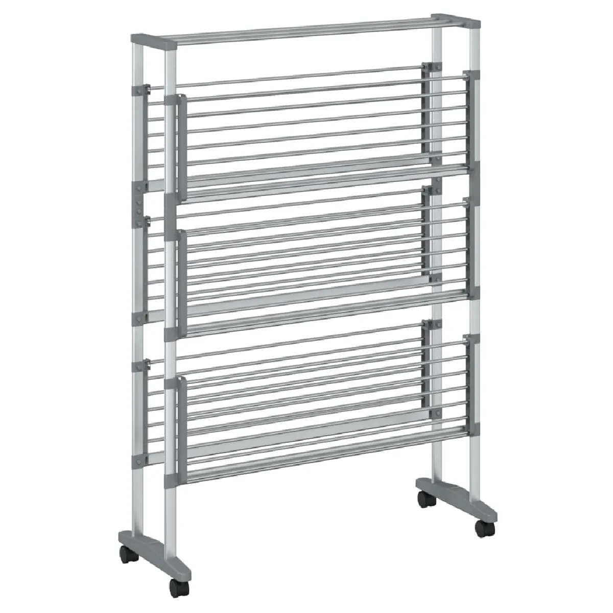 Séchoir à 3 niveaux - Aluminium et PS/PP - Longueur totale 36 m - Design pliable - Mobile avec 4 roues