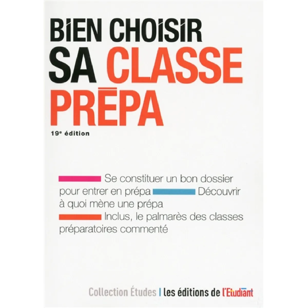 Quatrième de couverture : Afin d'aider les bacheliers dans la poursuite de leurs études, une présentation des grandes écoles, des différentes filières de prépas et des débouchés ainsi que des conseils pour constituer son dossier. Avec le palmarès 2017 pour l'ensemble des classes préparatoires.