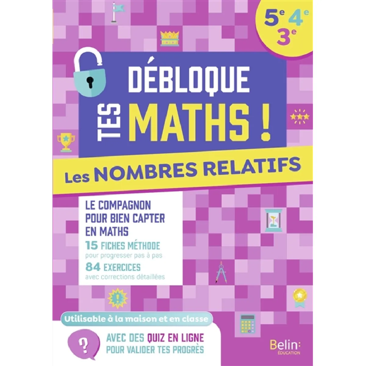 Quatrième de couverture : Tu bloques sur les nombres relatifs ? Suis ces 3 étapes pour enfin comprendre et maîtriser cette notion Révise les notions essentielles et prends confiance avec des exercices progressifs. Fais les quiz en ligne pour valider tes progrès. Entraîne-toi avec toutes les notions en faisant des exercices qui ressemblent à ceux que ton professeur pourra te donner en classe. 1 problème = 1 solution