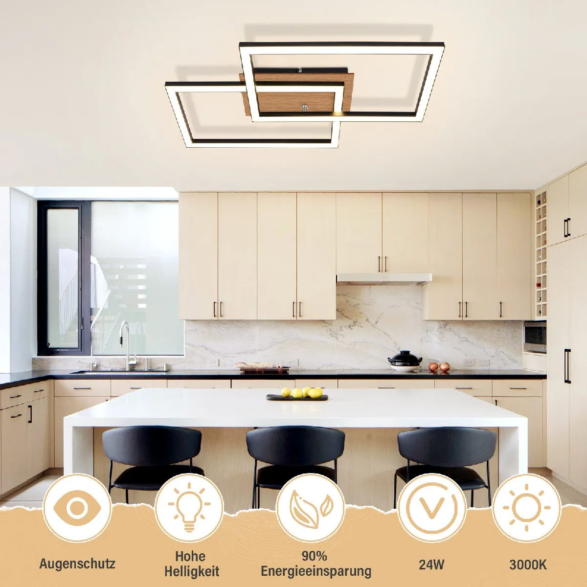 ZMH LED Plafonnier Salon Moderne 24W Cuisine Lumières Blanc Chaud Noir Vintage Couloir