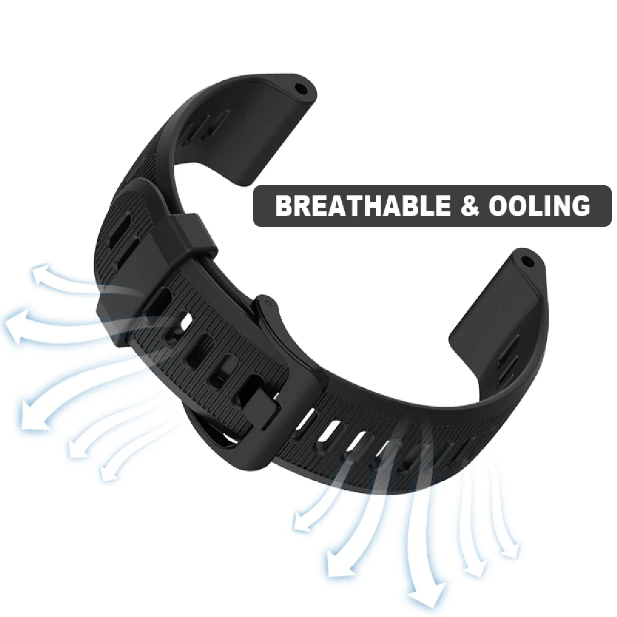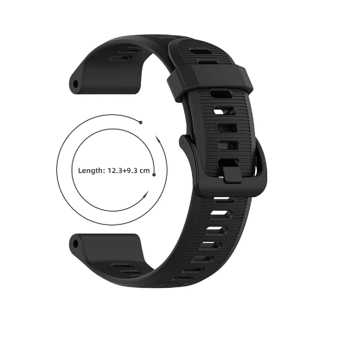 Le bracelet de sport souple et durable est en silicone résistant à l'eau. Le bracelet mesure 22 mm de large et s'adapte aux Garmin Forerunner 945/935 et Garmin Fenix 5. Le bracelet est facile à changer, outils inclus.