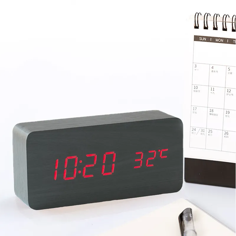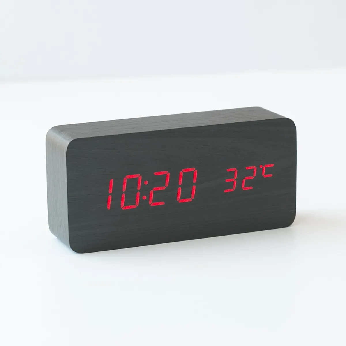 Réveil numérique LED Red en bois affichage clair et fonctions essentielles