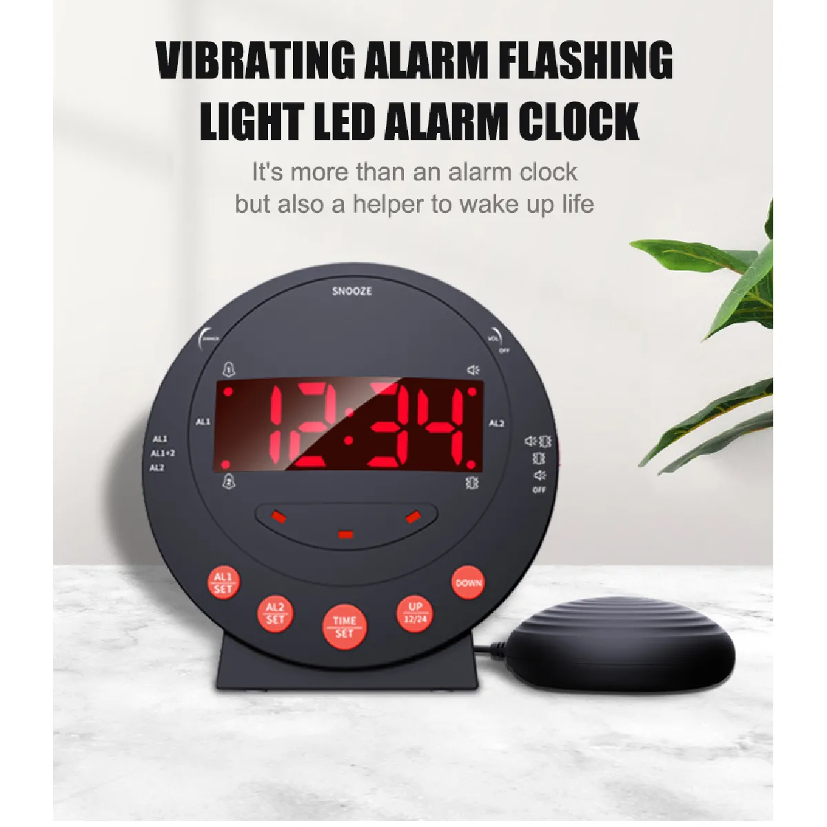Le secoueur de lit dédié fournit des vibrations puissantes pour réveiller sans son élevé, pratique pour les personnes à sommeil lourd ou pour ne pas déranger un partenaire. Les deux réglages d'alarme permettent de planifier des horaires distincts sur la même journée. Le volume ajustable et la luminosité réglable améliorent le confort visuel et sonore, tandis que le format 12/24 h s'adapte aux habitudes de lecture de l'heure.