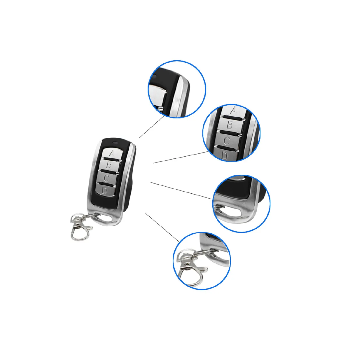 Collecter 4 télécommandes en une : Le duplicateur dispose de 4 boutons afin que vous puissiez collecter 4 télécommandes différentes ensemble. Cette télécommande sans fil RF à 4 canaux peut être utilisée pour les portes de garage, portails, systèmes d'alarme, etc.