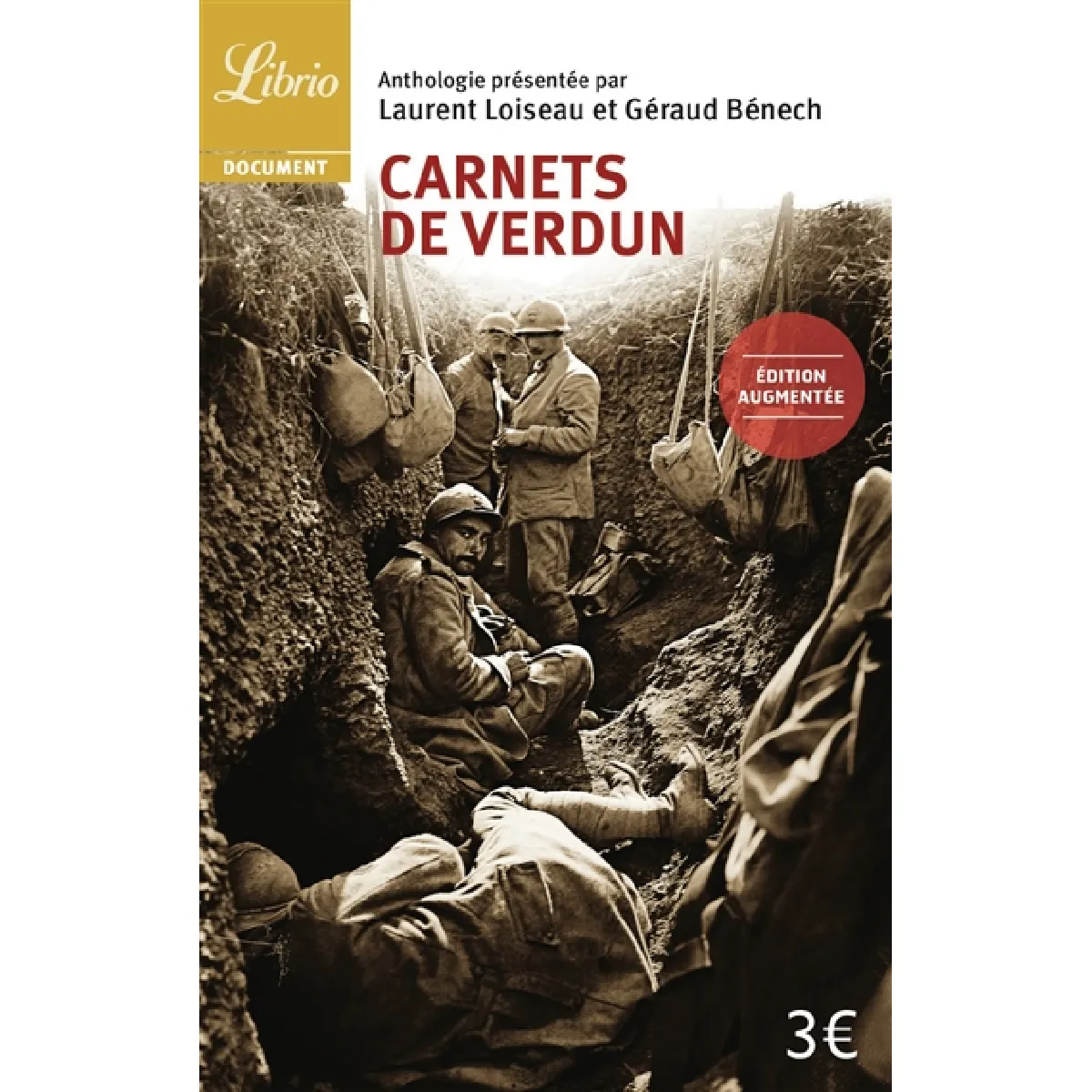 Quatrième de couverture : Carnets de Verdun "Baïonnette au canon. Grenades en main. Chacun a un coin. Ordre de tenir jusqu'à la mort." Forêt-sépulture où reposent 90 000 âmes, Verdun garde les cicatrices des 26 millions d'obus qui ont laminé les collines, fracturé les roches et rayé de la carte neuf villages. Sur quatre hommes qui montent au front, un seul revient indemne. Crapouillots, brancardiers, médecins-major ou mitrailleurs, ils en ont tenu le journal. Cette sélection de lettres aux familles et de carnets de guerre, souvent rédigés sur le vif, parfois remaniés après les combats, provient des archives des mémoriaux de Péronne et de Verdun. L'ouvrage est complété par des annexes pédagogiques comprenant une chronologie, une bibliographie et un lexique.