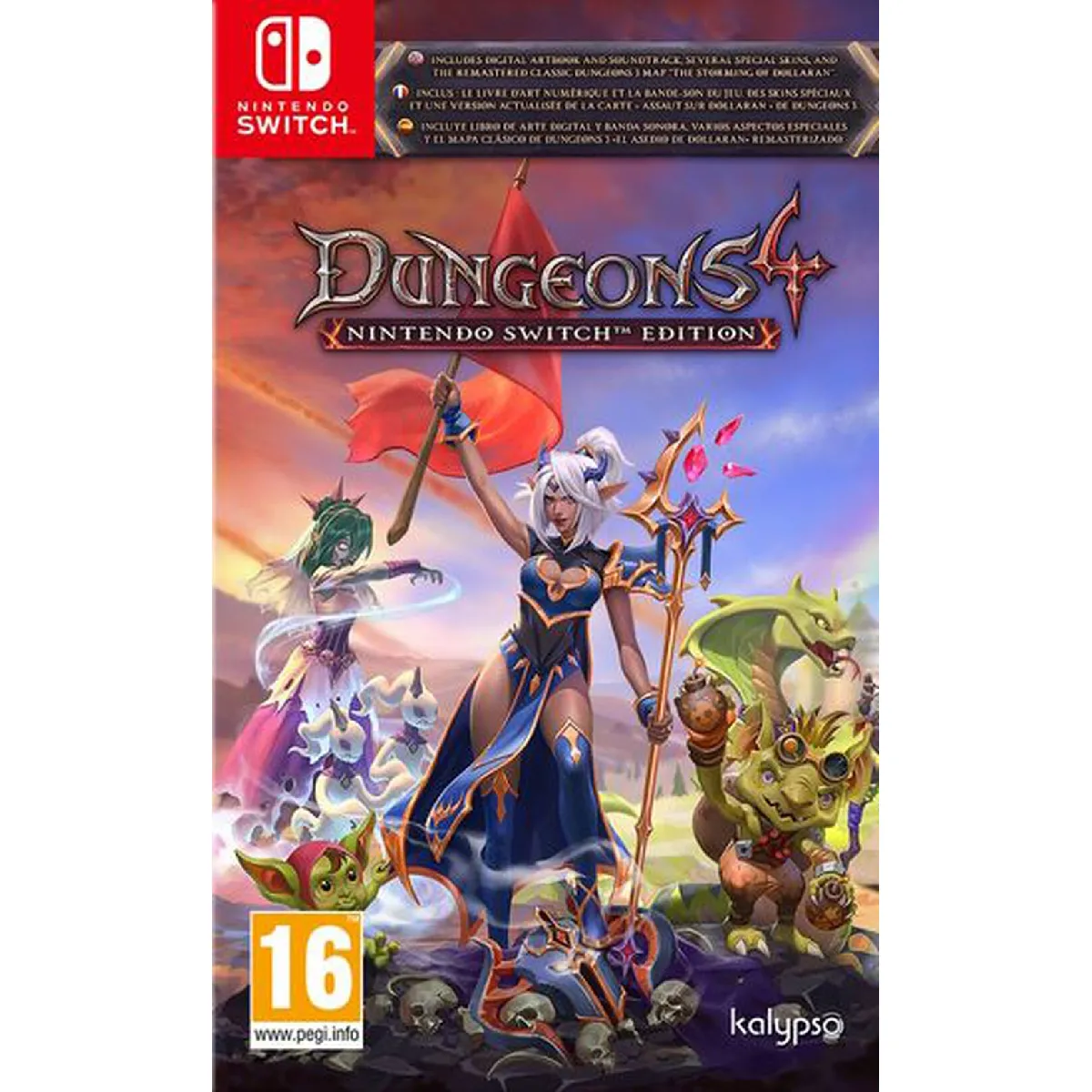 Suivez la Voie du Mal ! Le Mal absolu et sa fidèle *tousse* servante, l'elfe noire Thalya, reviennent dans Dungeons 4 pour triompher une fois de plus des forces du bien.Construisez un donjon douillet et confortable pour répondre aux besoins de vos créatures et régnez sur elles, puis envoyez-les dans le Surmonde pour rappeler gentiment aux bonnes gens qui y vivent que c'est le Mal absolu qui règne. Rassemblez votre Malfaisance de façon nouvelle et dynamique et déchaînez-la sur les forêts et les plaines verdoyantes du Surmonde pour les faire basculer du côté obscur.Dungeons 4 - Nintendo Switch™ Edition vous livre du Bien, avec une tenue ' Princesse ' exclusive pour Thalya, une nouvelle option de tenue pour les Grouillots et un skin unique pour votre salle du trône, ainsi que le ' pack deluxe ' comprenant une carte, des apparences, la bande-son officielle et l'artbook numérique. Dungeons 4 - Nintendo Switch™ Edition propose 20 missions entièrement vocalisées et délicieusement maléfiques, ainsi que plusieurs cartes d'escarmouche pour ceux qui recherchent du défi. Établissez votre base maléfique sur les vastes cartes du Surmonde et préparez-vous à répandre votre Malfaisance dans l'immense Surmonde, en faisant basculer les environnements luxuriants du côté obscur. Les nains sont arrivés pour construire leurs forteresses souterraines, ces petits bonshommes rustiques rivalisent avec le Mal en perpétuelle expansion pour l'espace et les ressources.Le système de perk de Thalya place de nouveaux pouvoirs impressionnants entre ses mains impatientes.Le mode coopératif à 2 joueurs permet aux deux joueurs de gérer un donjon ensemble. Toutes les cartes du mode Escarmouche et de la Campagne sont jouables en coopération.Dungeons 4 - Nintendo Switch Edition est livré avec une tenue exclusive ' Princesse ' pour Thalya, de nouvelles apparences pour les Grouillots et votre salle du trône, ainsi que le ' pack deluxe ' comprenant la carte ' Assaut sur Dollaran ', les apparences pour Thalya et la Main du mal, la bande-son officielle et le livre d'art numérique.