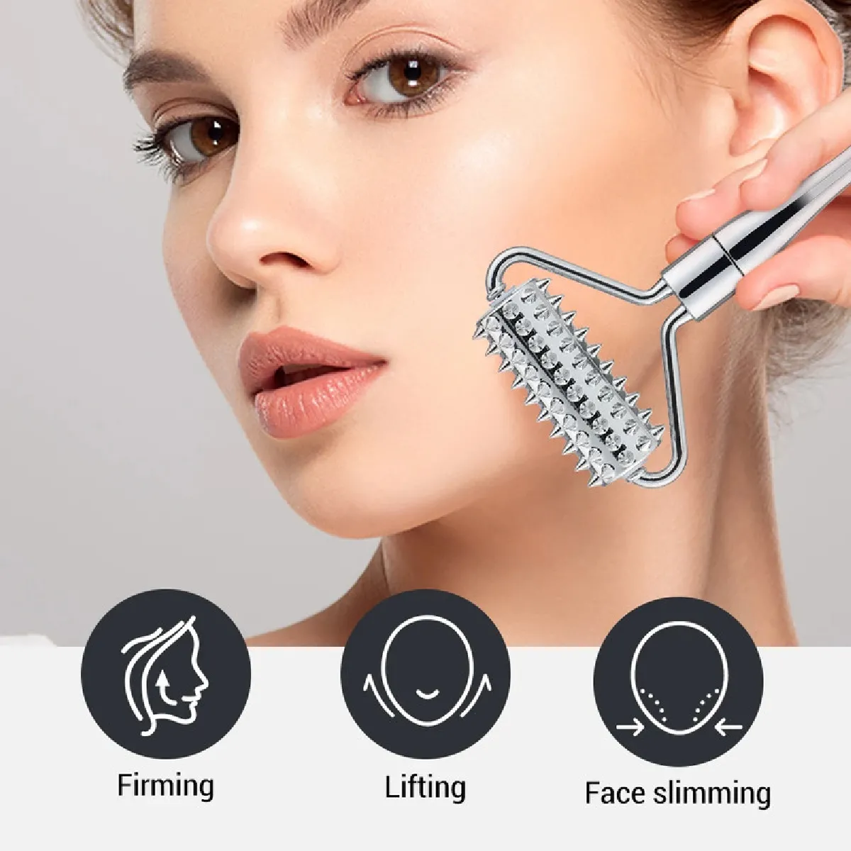 Masseur facial à rouleaux - Stimulation micro-aiguille - Léger, portable - Antirouille