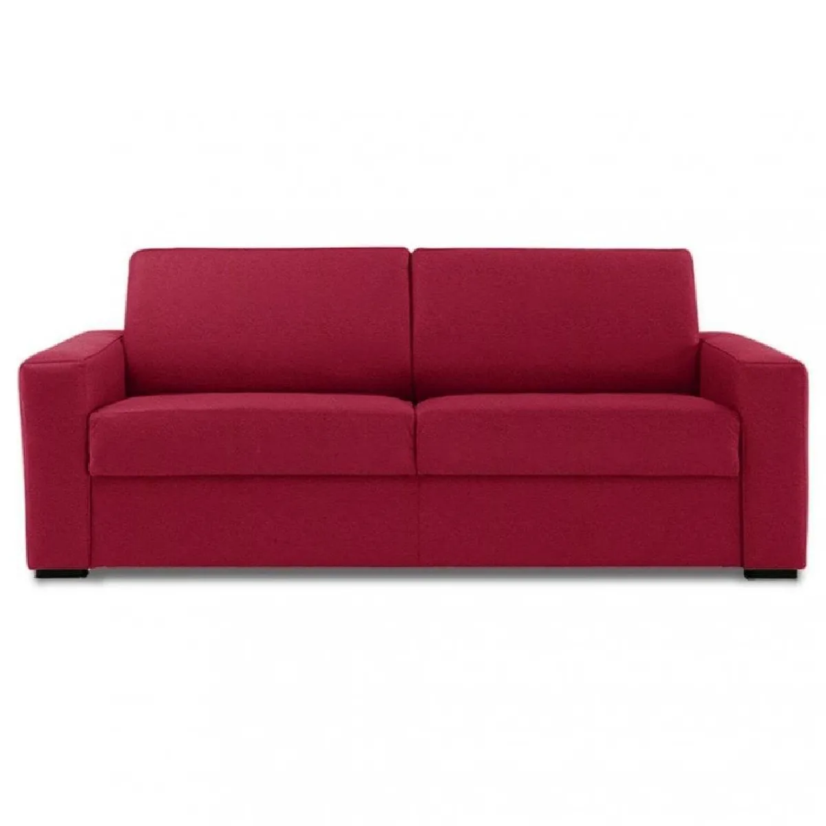 Canapé fixe 3 places en velours rouge, assise ferme et lignes design