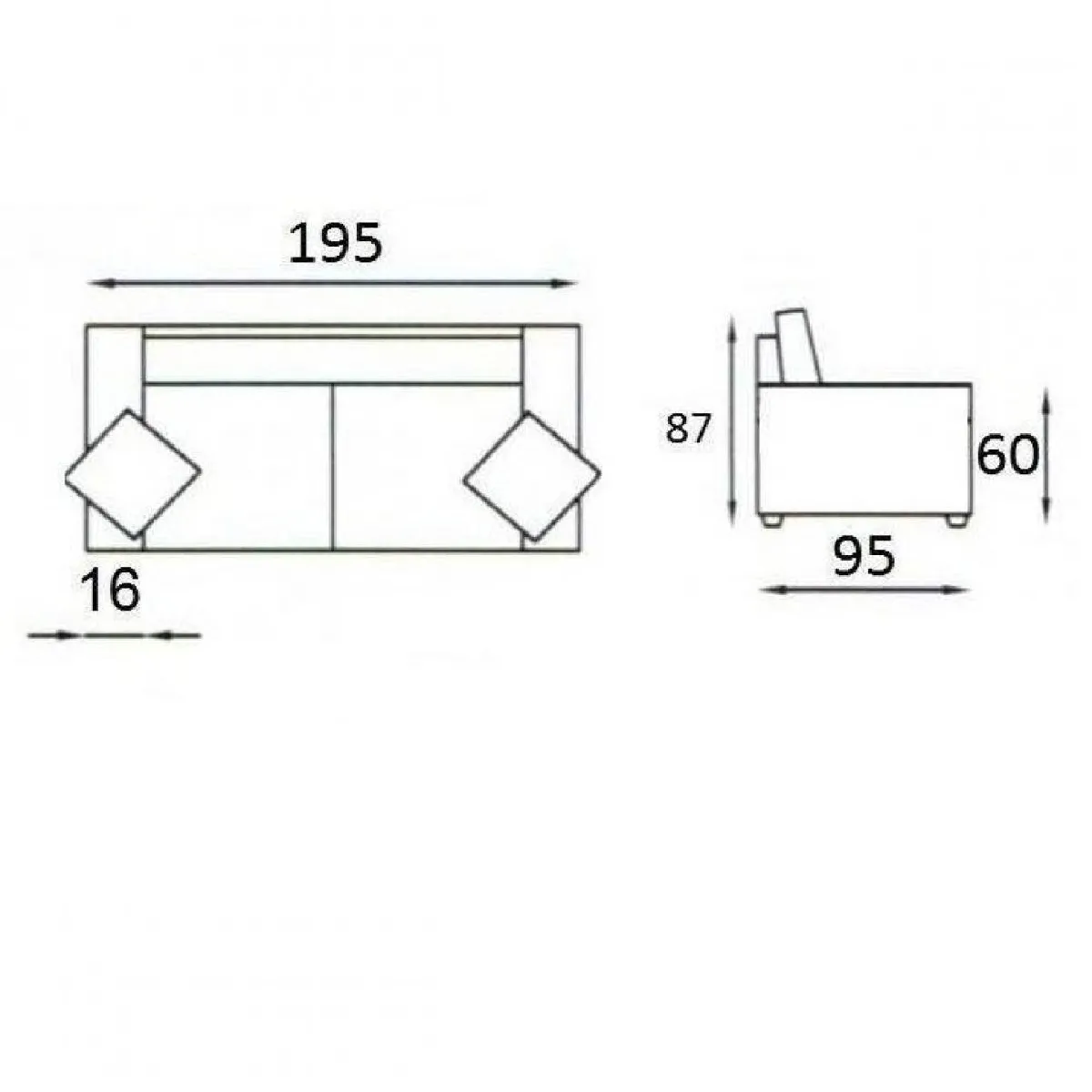 - Dimensions : L195 x P95 x H87 cm ; assise L163 x P55 x H50 cm ; largeur accoudoirs 16 cm