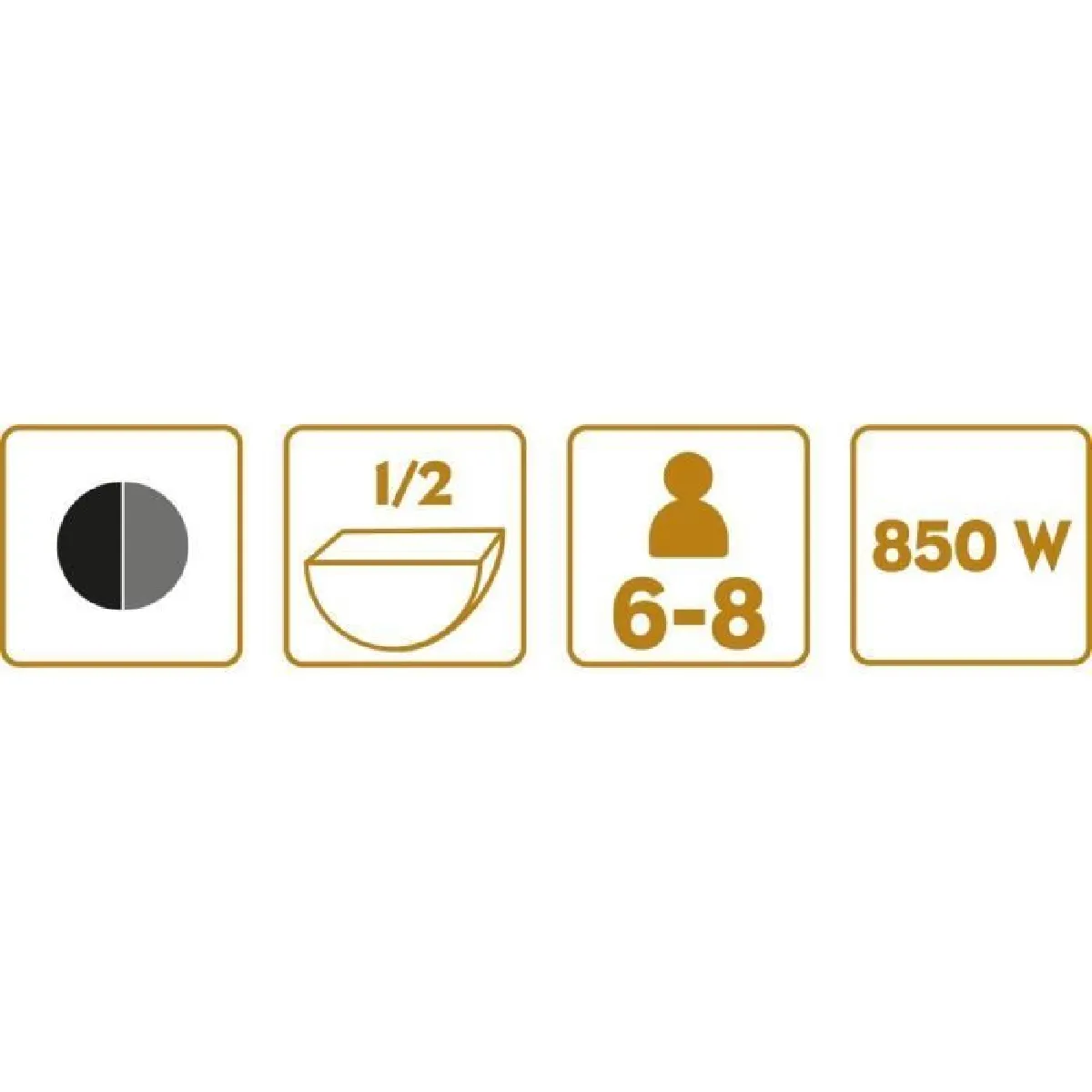 La puissance de 850 W assure une montée en chaleur régulière pour obtenir une fonte homogène adaptée aux demi-meules. Le réglage de température permet d'ajuster l'intensité selon la maturité du fromage afin de préserver les arômes. Pensé pour des tablées jusqu'à 6 convives, l'appareil facilite un service continu : chaque passage sous la source de chaleur offre une croûte légèrement dorée et un cur fondant. La spatule en bois incluse garantit un geste précis pour racler sans abîmer les surfaces, tout en maintenant une hygiène simple au quotidien.