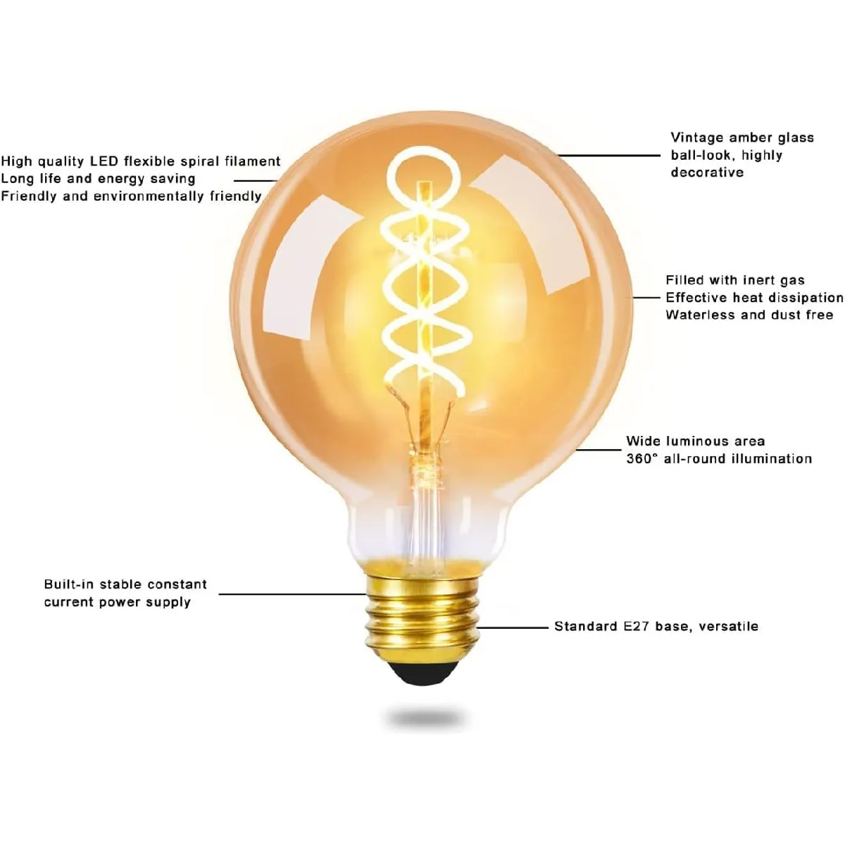 Le verre doré de style vintage et les filaments sinueux façon Edison apportent une touche décorative, tout en diffusant un éclairage omnidirectionnel à 360°. La durée de vie annoncée de 20000 heures limite les remplacements fréquents. L'ampoule fonctionne sur 240 V et s'intègre aux luminaires non connectés, sans assistants vocaux. Sans UV ni IR, ni plomb ni mercure, elle convient aux pièces de vie où l'on souhaite un rendu doux et chaleureux. Ce lot de 3 ampoules permet d'harmoniser plusieurs points lumineux pour une ambiance cohérente et confortable.
