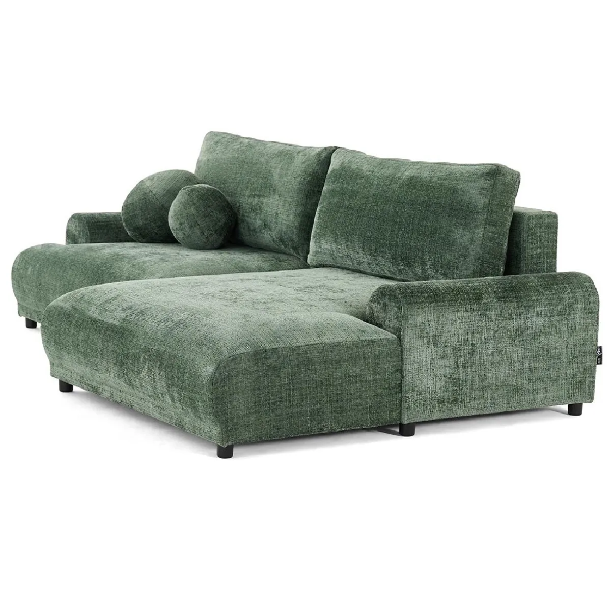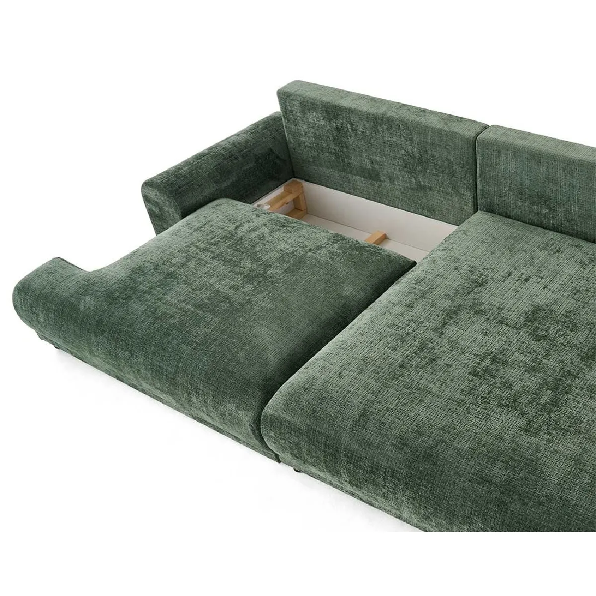 Nelly - canapé d'angle droit 4 places convertible avec coffre en velours texturé - Vert