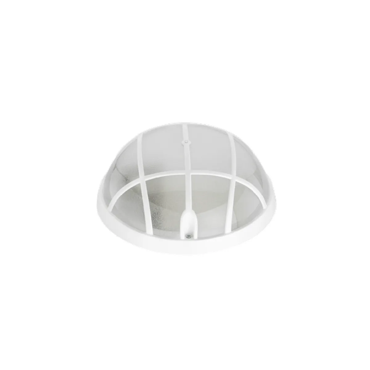 Ce hublot rond blanc 100W (Eq. 20W FLC - 12W LED) IP54 E27 Diam. 204mm vous séduira par sa belle esthétique et vous rassurera par sa grande résistance (antichoc).