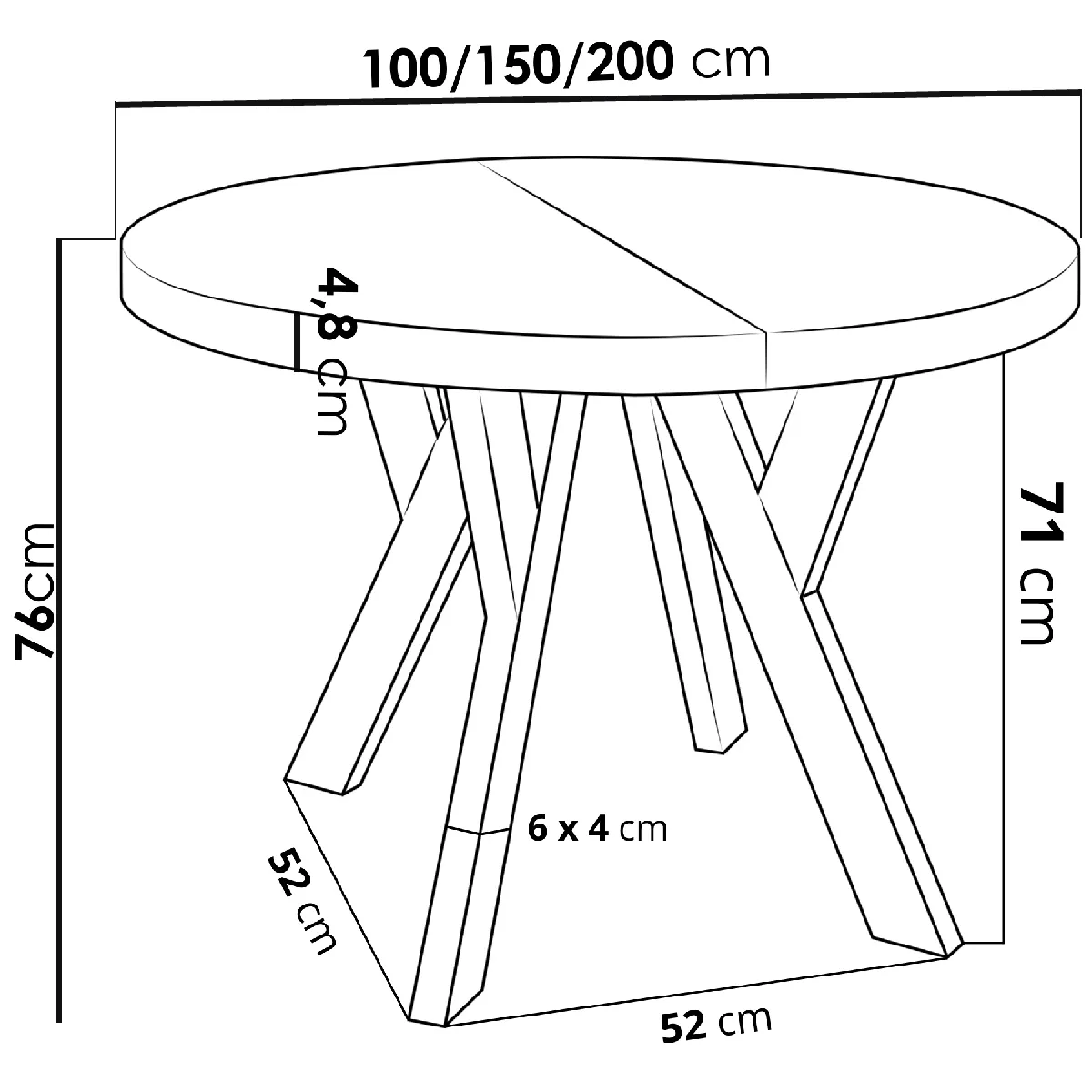 - Type : table à manger ronde, extensible et pliable