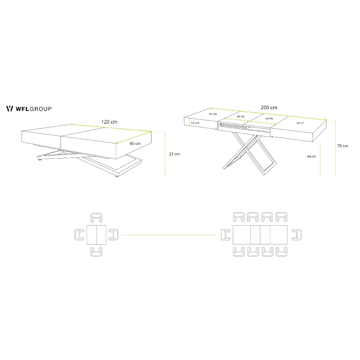 WFL GROUP Cavetta X - Table basse relevable extensible - Chêne Craft |
