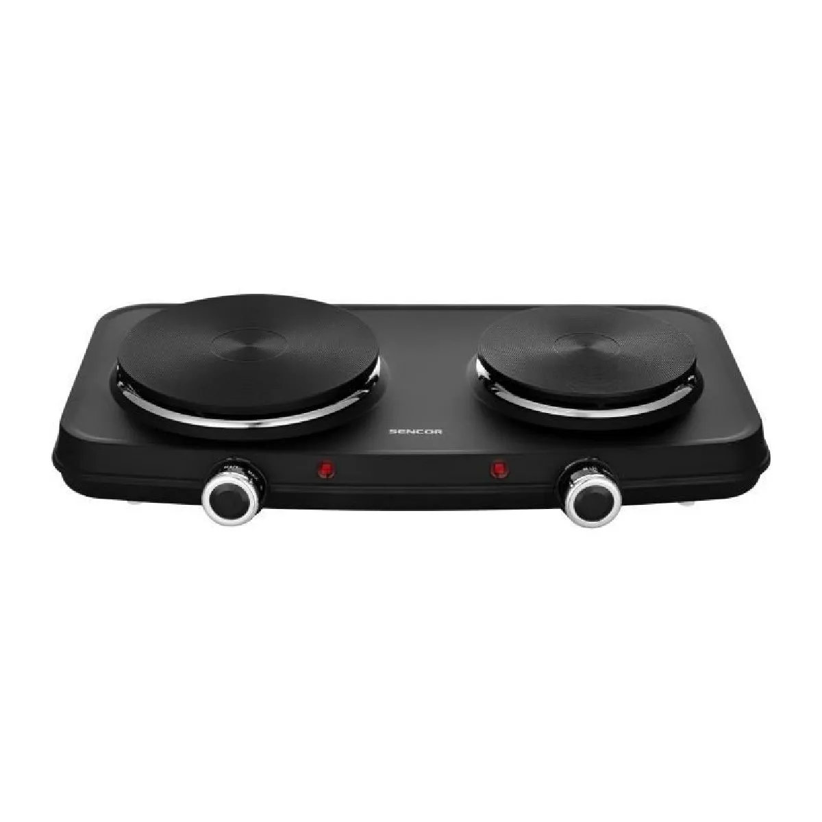 Plaque de cuisson électrique double - 2 foyers en fonte - 2500 W - Thermostat réglable - Témoins LED - Protection anti-surchauffe - Commandes frontales