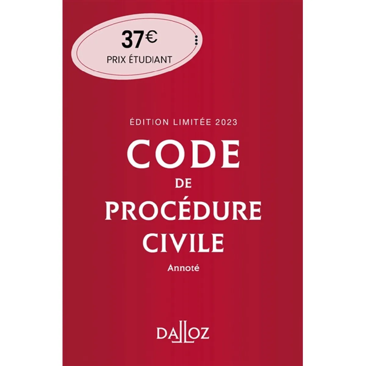 Quatrième de couverture : Code de procédure civile Édition limitée 2023 Le Code de procédure civile Dalloz comprend le code proprement dit, le code de l'organisation judiciaire, le code des procédures civiles d'exécution et d'importants textes complémentaires relatifs à l'action en justice, à l'aide juridique, au droit international, aux professions juridiques, ou encore aux frais et dépens. Cette nouvelle édition intègre notamment : le décret du 25 février 2022 favorisant le recours à la médiation et portant application de la loi pour la confiance dans l'institution judiciaire ; le décret du 29 décembre 2021 relatif à la réforme des sûretés ; le décret du 13 octobre 2021 relatif au traitement des pourvois formés devant la Cour de cassation ; le décret du 11 octobre 2021 relatif à la procédure d'injonction de payer et modifiant diverses dispositions de procédure civile ; les décrets modifiant les dispositions de l'organisation judiciaire, notamment du 29 juin 2021 ; le règlement européen du 25 novembre 2020 relatif à la signification et à la notification dans les États membres des actes judiciaires et extrajudiciaires en matière civile ou commerciale, entrant en vigueur le 1er juillet 2022. L'ensemble du code est accompagné d'annotations jurisprudentielles et bibliographiques abondantes. Les annotations de jurisprudence relatives à la procédure en matière familiale ont été intégralement refondues.