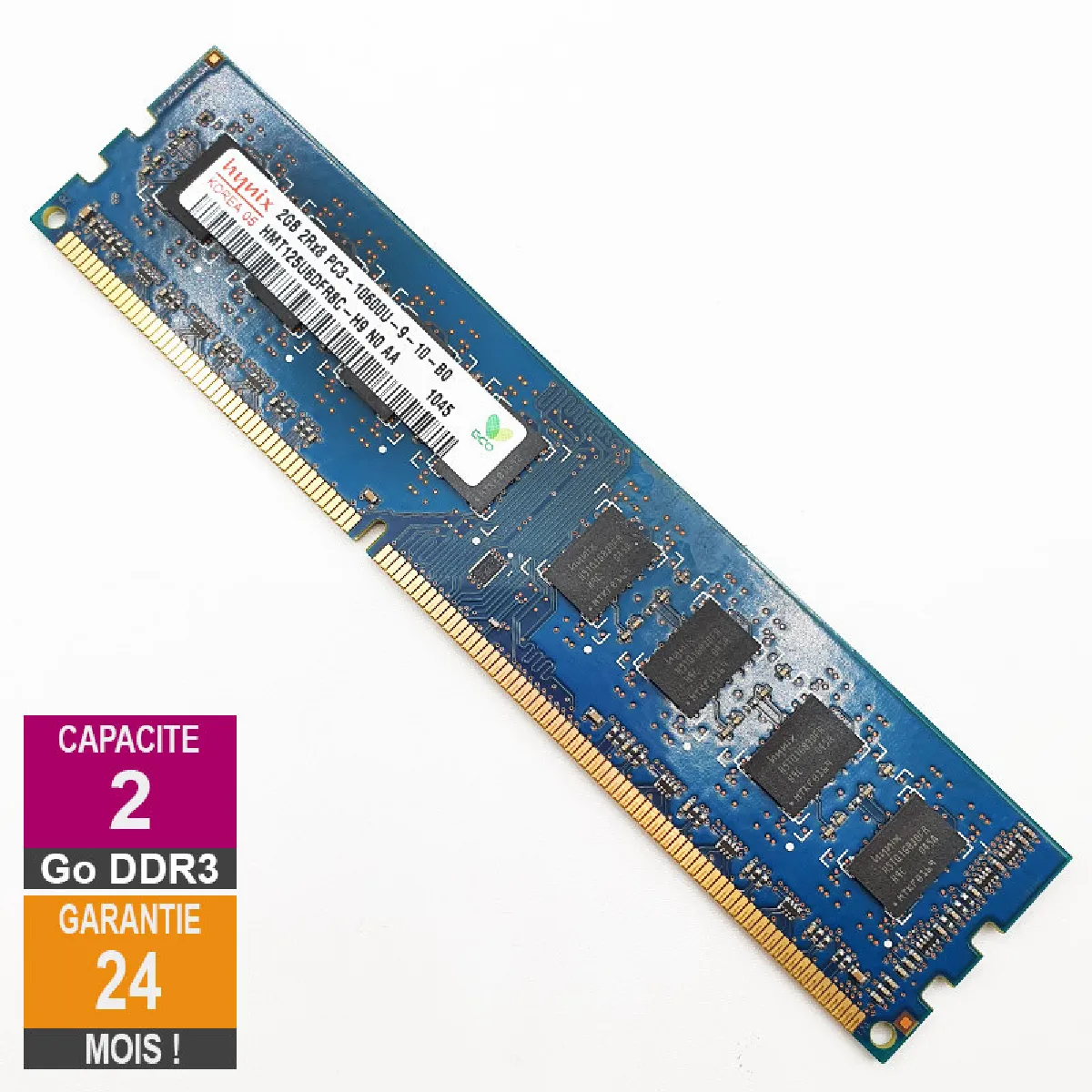 Commentaire vendeur : Marque : HynixModèle : HMT125U6DFR8C-H9Capacité : 2GoType : DDR3 PC3-10600U DIMMFréquence : 1333MHzCorrection d'erreur ECC : NONRangs : 2Rx8Latence (CAS) : 9Tension d'alimentation : 1.5V
