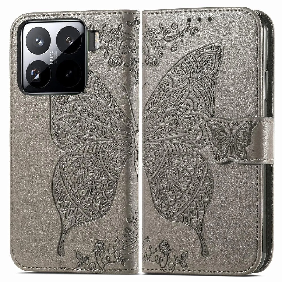 Coque pour Flip Étui Pour Xiaomi 15 Pro Multi-couleur Papillon Portefeuille Aile Affaires FOXDOCK Gris