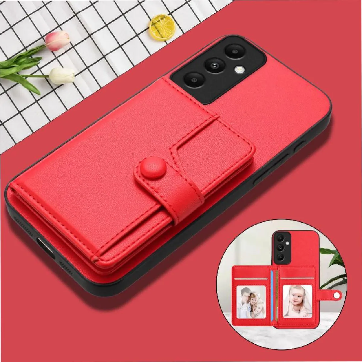 Coque portefeuille en cuir PU - Protection complète - Design unique
