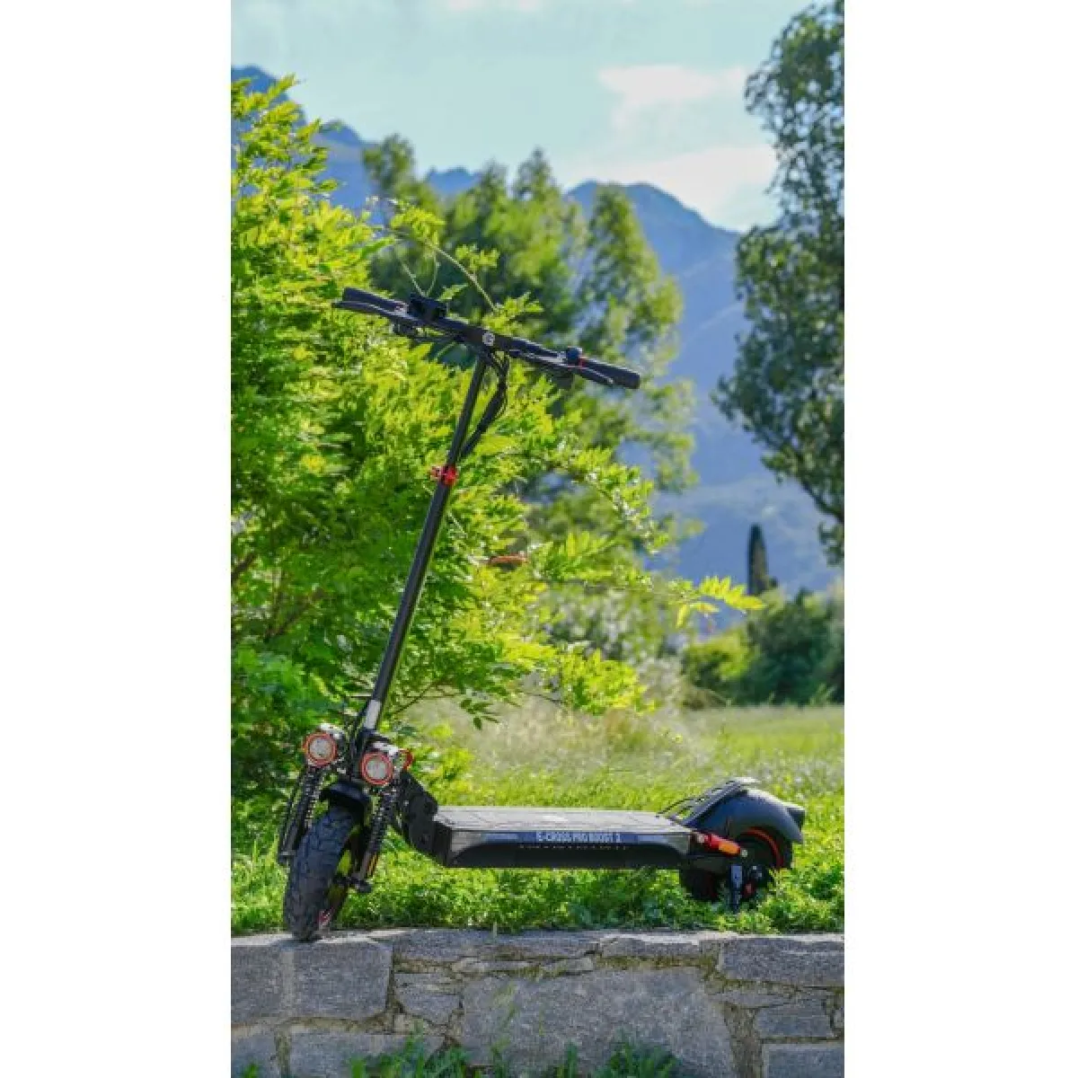 La trottinette UrbanGlide E-Cross Pro Boost 2 offre une puissance et un confort exceptionnels pour une utilisation urbaine comme tout-terrain. Grâce à ses deux moteurs de 800W max, sa batterie 48V 12,5Ah et ses 6 suspensions, elle assure une conduite stable et fluide sur tous types de routes.
