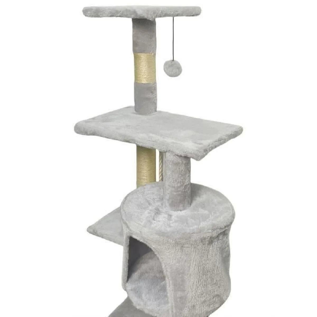 Arbre à chat - Tissu peluche et sisal - Hauteur 114 cm - 3 plateformes et corde - Couleur gris