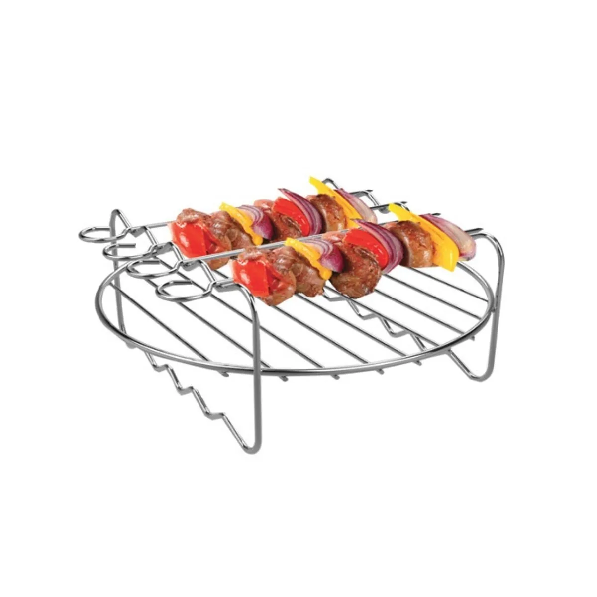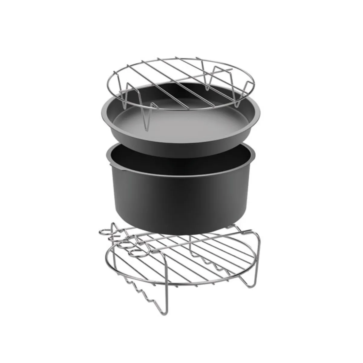 Set d’accessoires pour friteuse à air Easy Fry - moule gâteau, plat pizza, grille brochettes, grille viande - revêtement antiadhésif - alu et inox - compatible lave-vaisselle