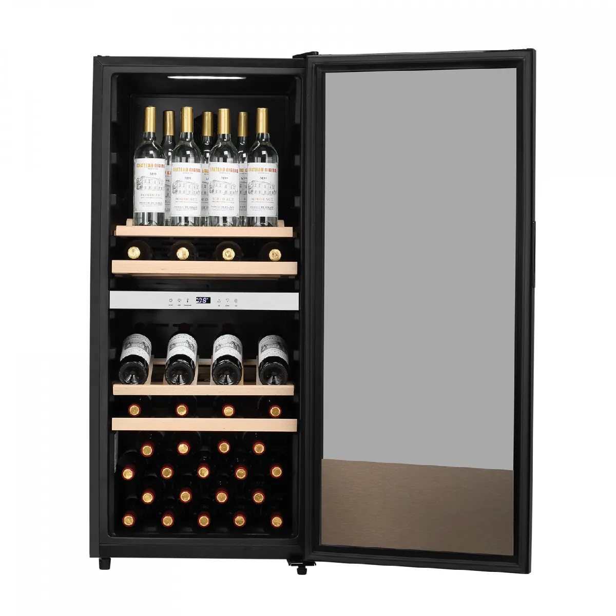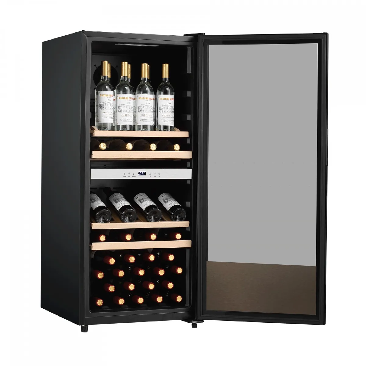 Cave à vin multi-températures - 2 zones indépendantes - froid ventilé - porte vitrée anti-UV - affichage LED - anti-vibration - pose libre - alarme de porte - commande tactile - classe énergétique G