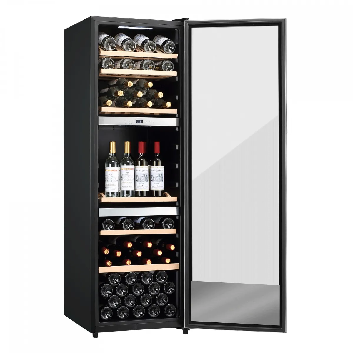 La gestion de plusieurs styles de vins devient simple grâce aux trois zones de température indépendantes et à un froid ventilé assurant une répartition homogène. Cette cave à vin en finition Inox accueille jusqu'à 140 bouteilles avec une porte vitrée traitée pour limiter les UV. Le compresseur et le système anti-vibration réduisent les variations pour un environnement stable. L'affichage numérique permet de contrôler précisément chaque zone, tandis que l'hygromètre intégré aide à maintenir un taux d'humidité adapté. La porte réversible facilite l'intégration et les clayettes en bois de hêtre optimisent le rangement et la présentation.