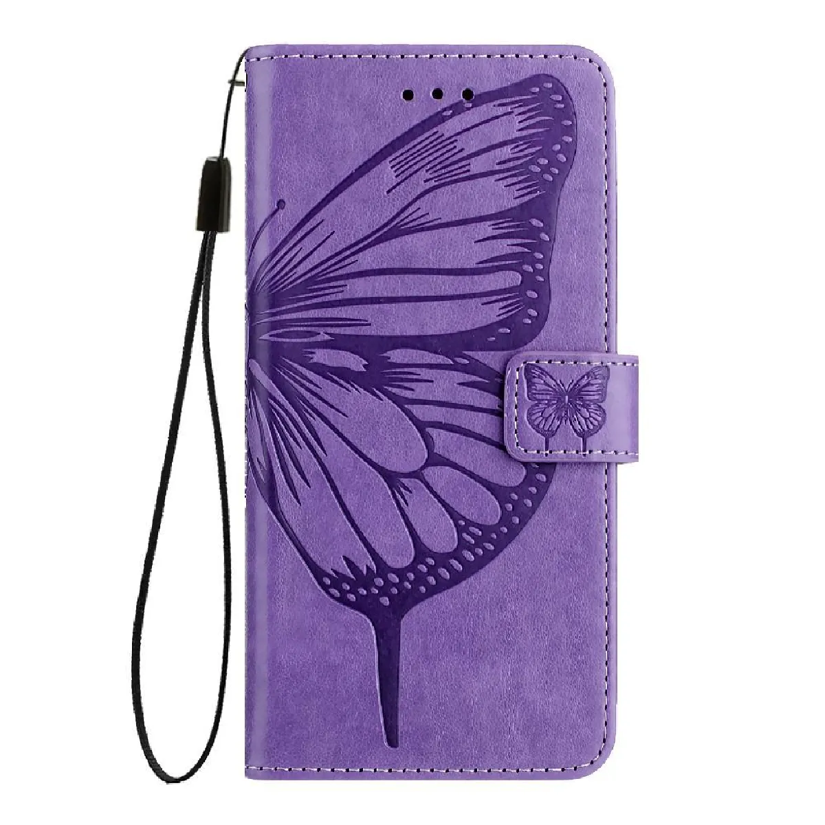 Étui portefeuille cuir avec gaufrage papillon - Fermeture magnétique - Porte-cartes intégré
