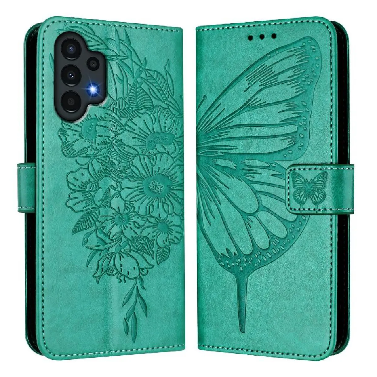 Coque pour Étui Pour Samsung Galaxy A04s Cuir Premium Gaufrage Papillon Magnétique Couverture Rabotant GANGXUN Vert