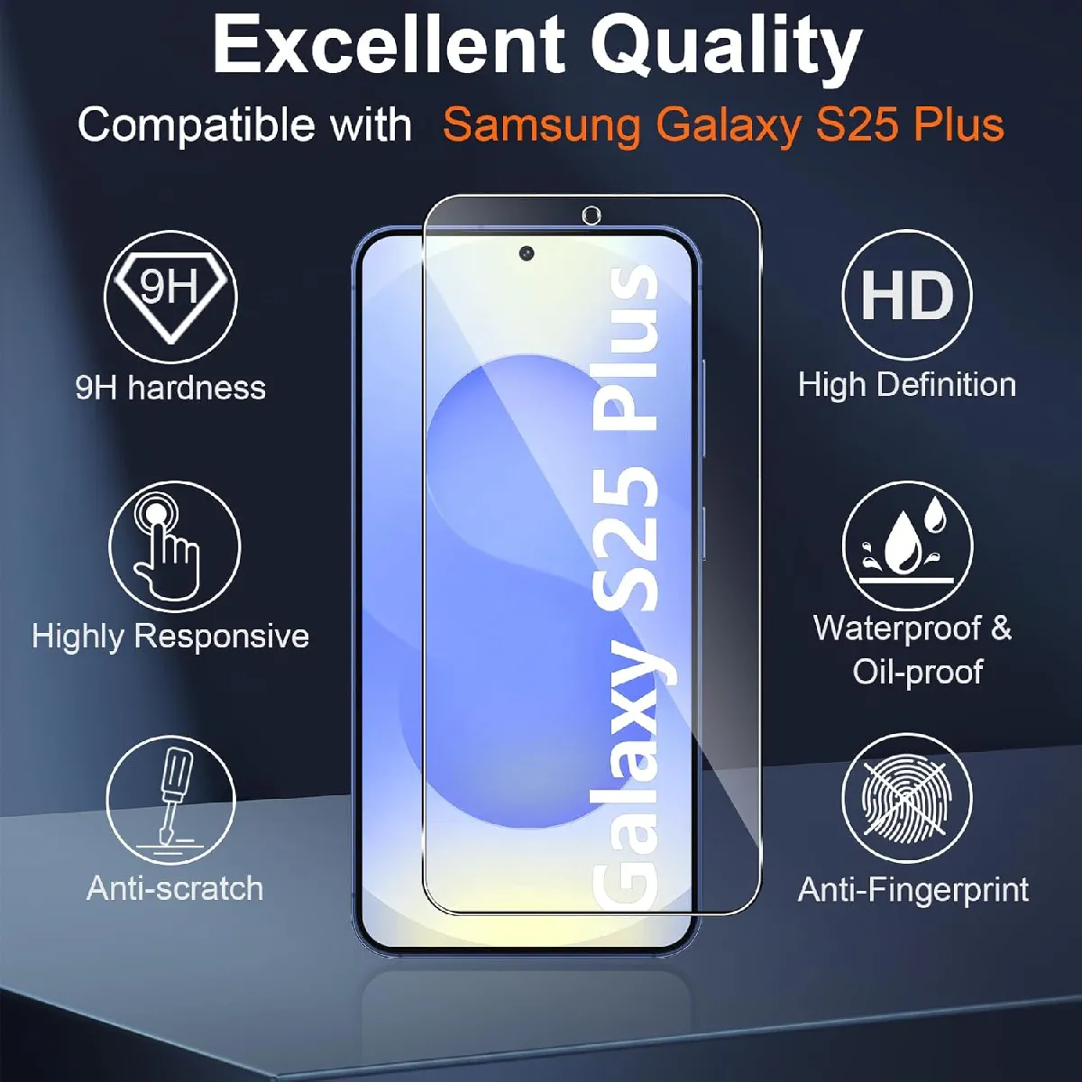 Pack de protection écran - 3 verres trempés - Compatible Samsung Galaxy S25 Plus - Lingettes nettoyantes incluses