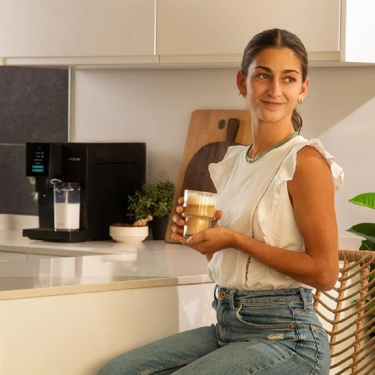 Machine à café super-automatique avec broyeur conique - Pompe 19 bars - Thermoblock - Écran tactile - Réservoirs amovibles - Nettoyage automatique - Arrêt automatique