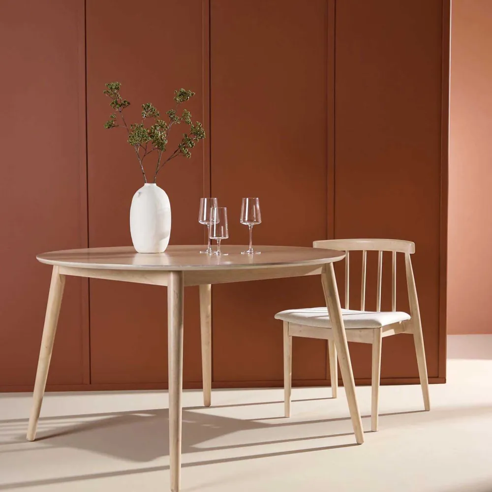 Table ronde Flora ø120 cm en hévéa Beige
