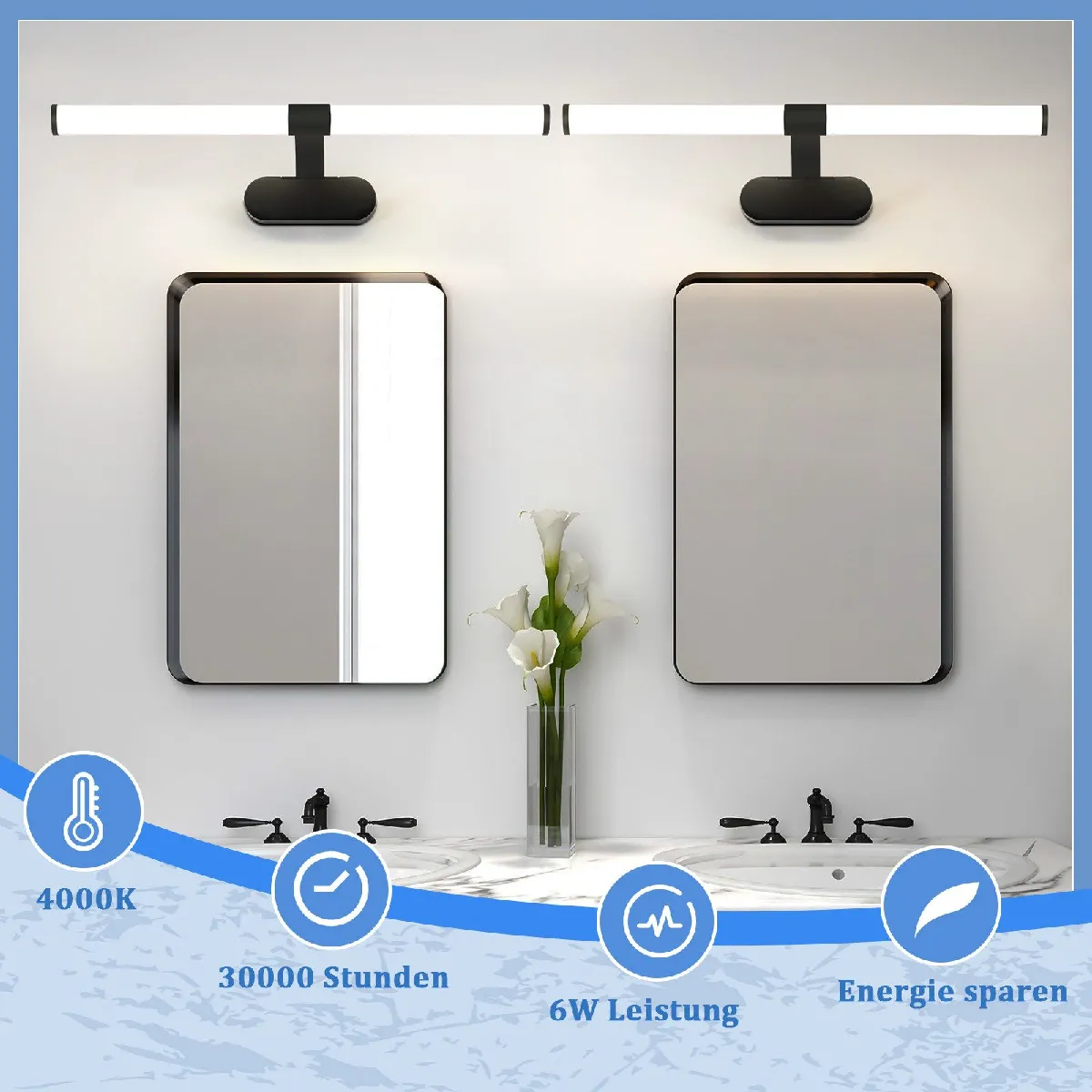 Lampe LED pour miroir - Noir - IP44 - 60CM - 8W - Blanc neutre