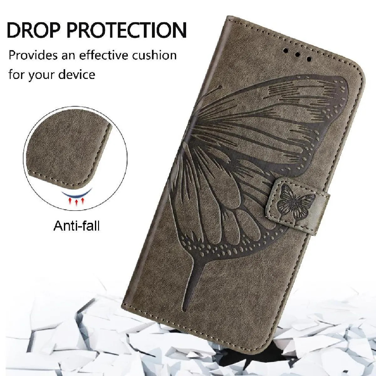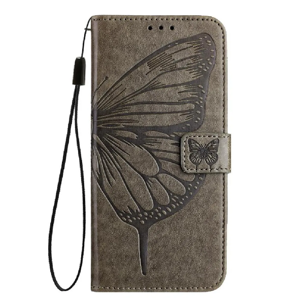 Coque pour Étui Pour Motorola MOTO G Play 2025 Gaufrage Papillon Magnétique Cuir Premium Couverture Rabotant FOXDOCK Gris