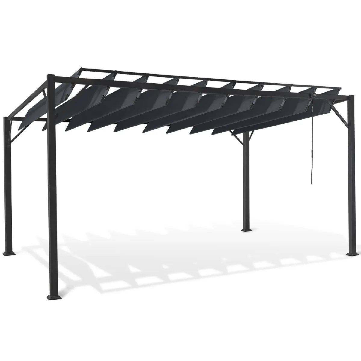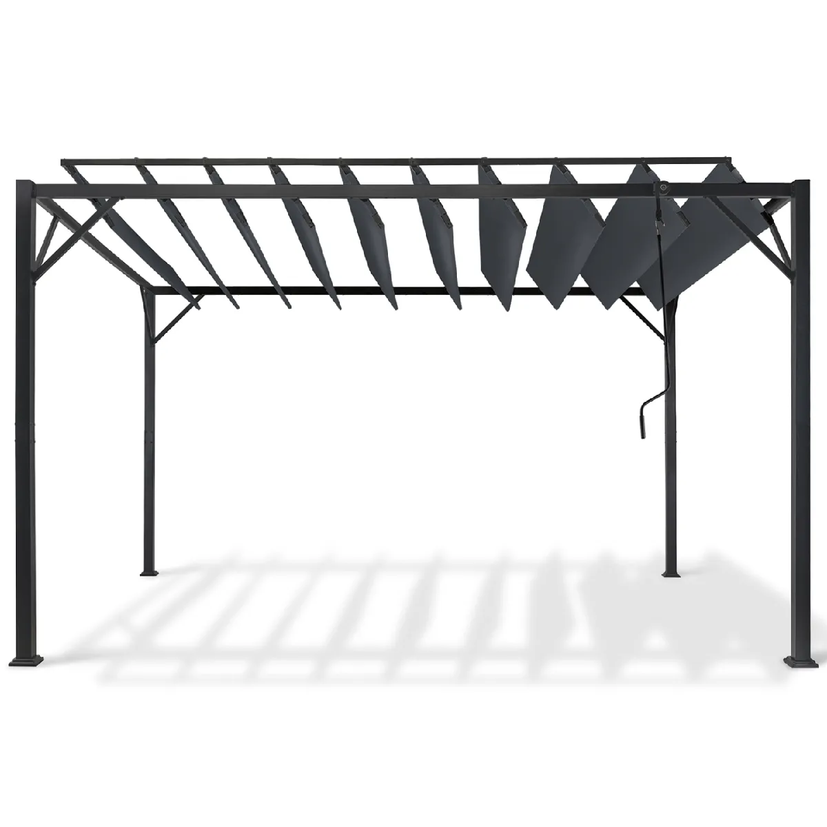 Pergola lames orientables - 3x4 M - Acier - Tissu polyester - Gris anthracite