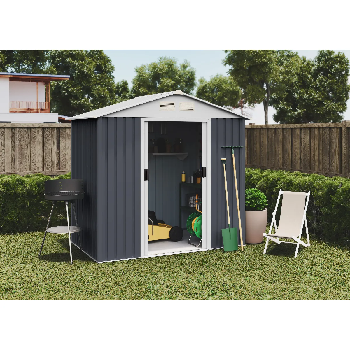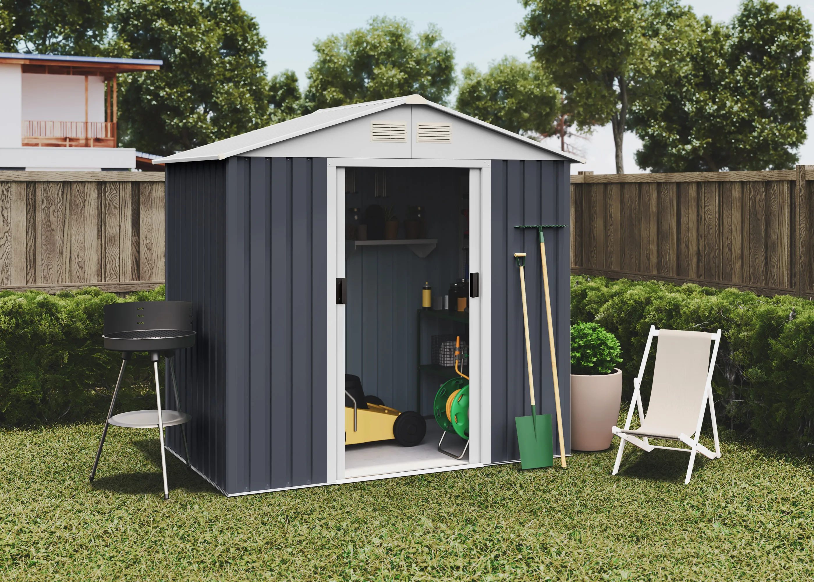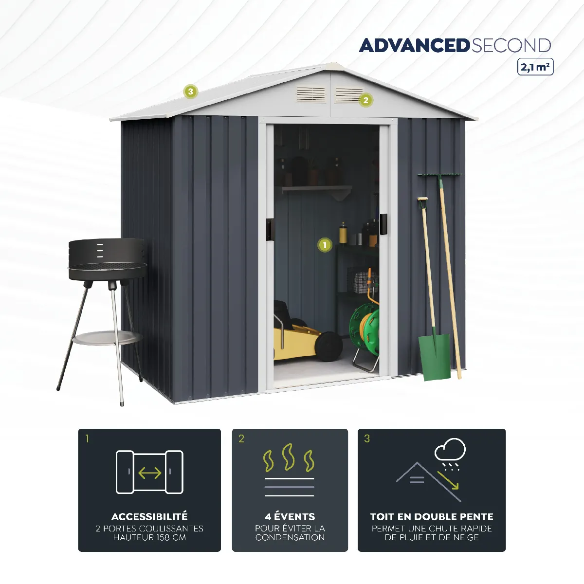 Abri de jardin métal 2,1 m² avec toit à deux pans et double porte coulissante