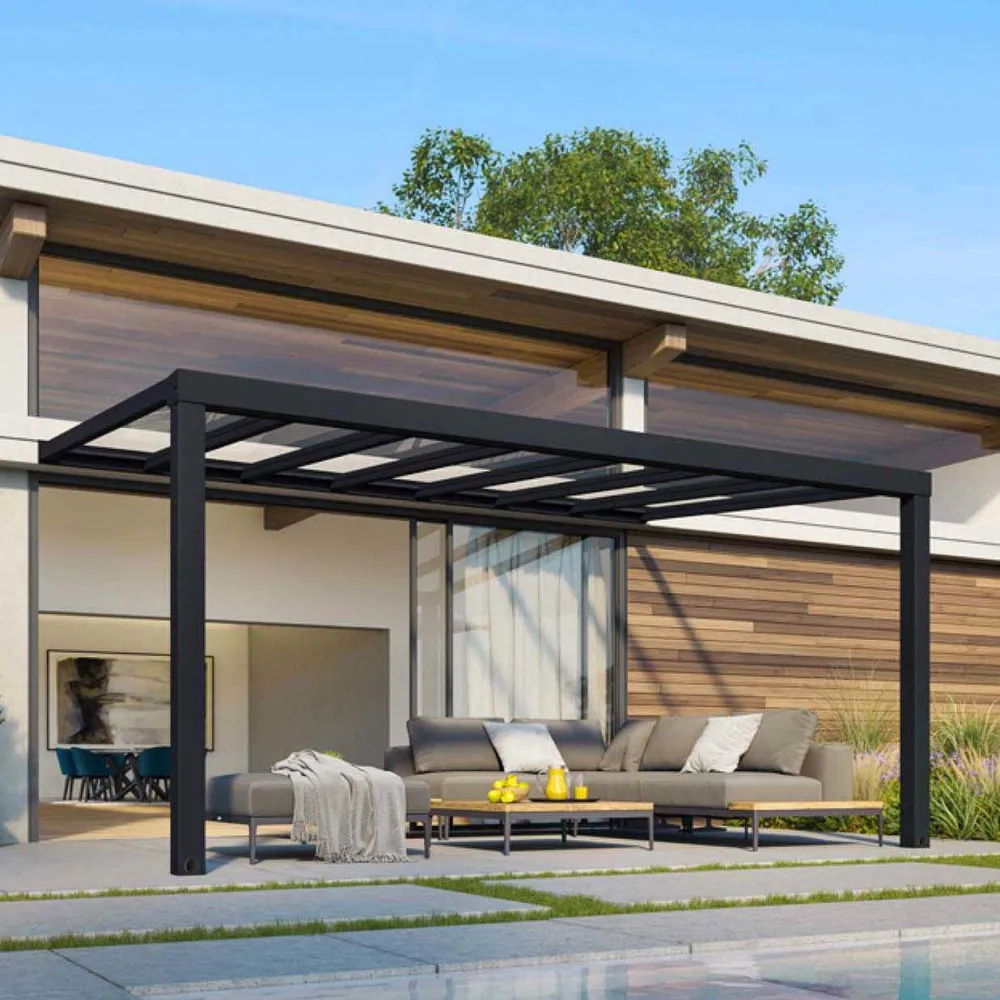 Pergola adossée en aluminium et polycarbonate, 17 m²