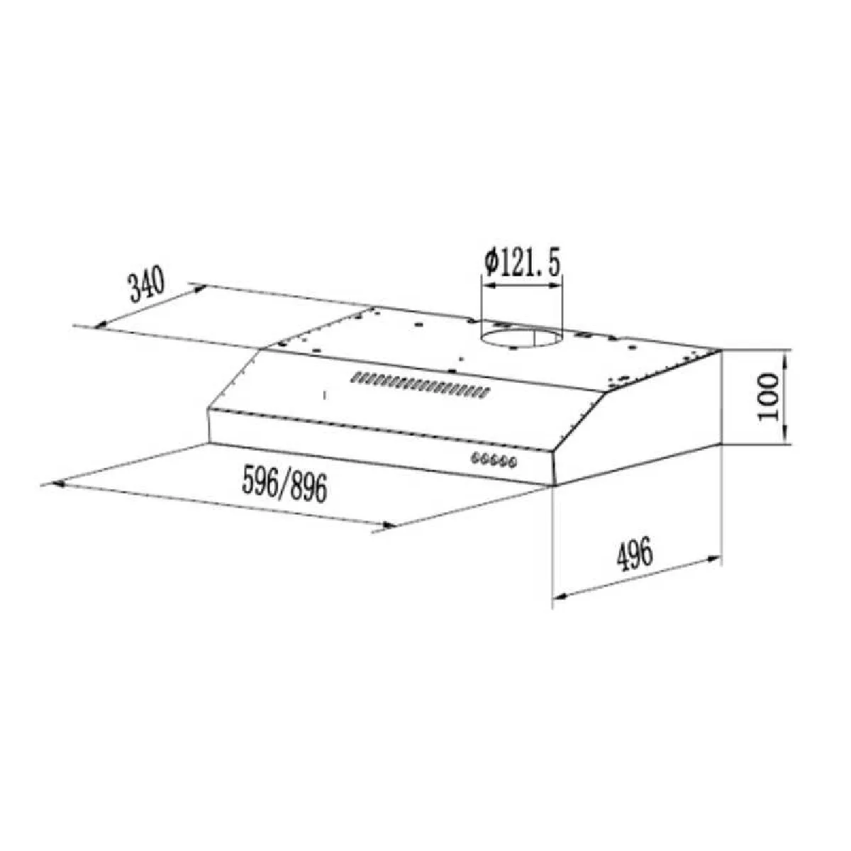 Hotte casquette 60 cm - Débit d'air 300 m³/h - Niveau sonore 66 dB - Classe énergétique C