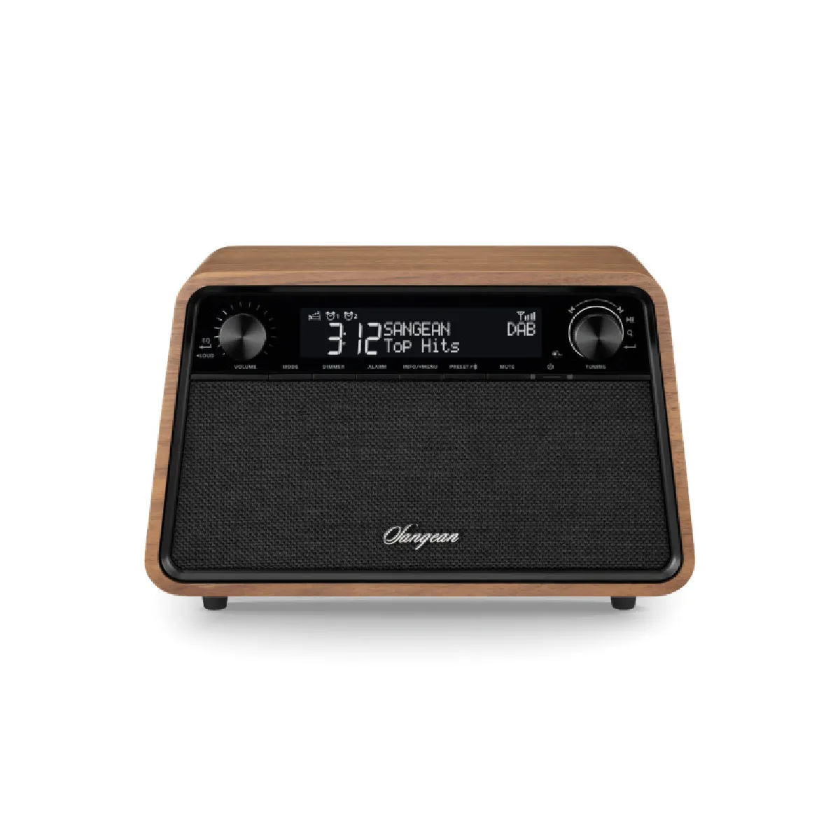 La combinaison DAB+ et FMRDS facilite l'accès aux programmes locaux et thématiques, tandis que la connectivité Bluetooth et l'entrée auxiliaire couvrent les sources sansfil et filaires. L'écran LCD dimmable maintient un confort visuel adapté aux chambres peu éclairées. Le coffret en noyer s'intègre naturellement aux espaces de vie et contribue, avec les hautparleurs en bois, à une scène sonore cohérente à bas et moyen volume pour les voix comme pour la musique.